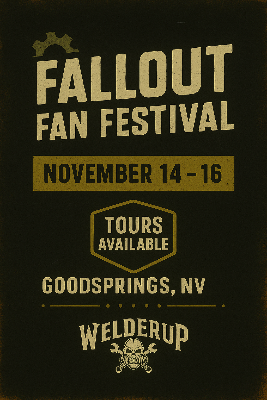 VISIT WELDER UPStep into the wasteland this November 14–16 as WelderUp opens its legendary Goodsprings property for an exclusive Fallout Fan Festival experience.