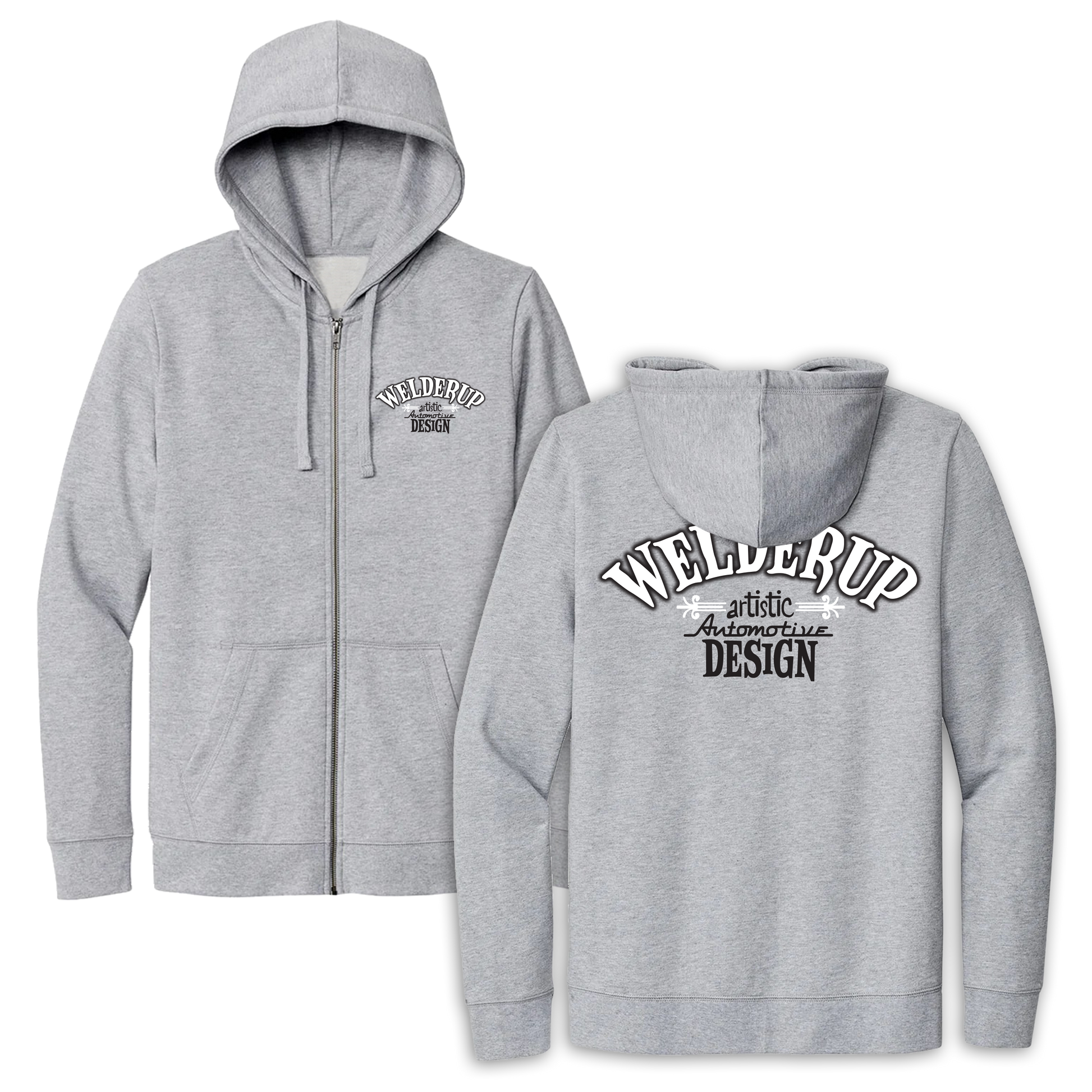 The Artistic Automotive Design artwork is printed on a unisex heather gray zip-up 7 oz. Hoodie. The fabric content is 75% Cotton/25% Poly. It is offered in unisex sizes XS-3XL.