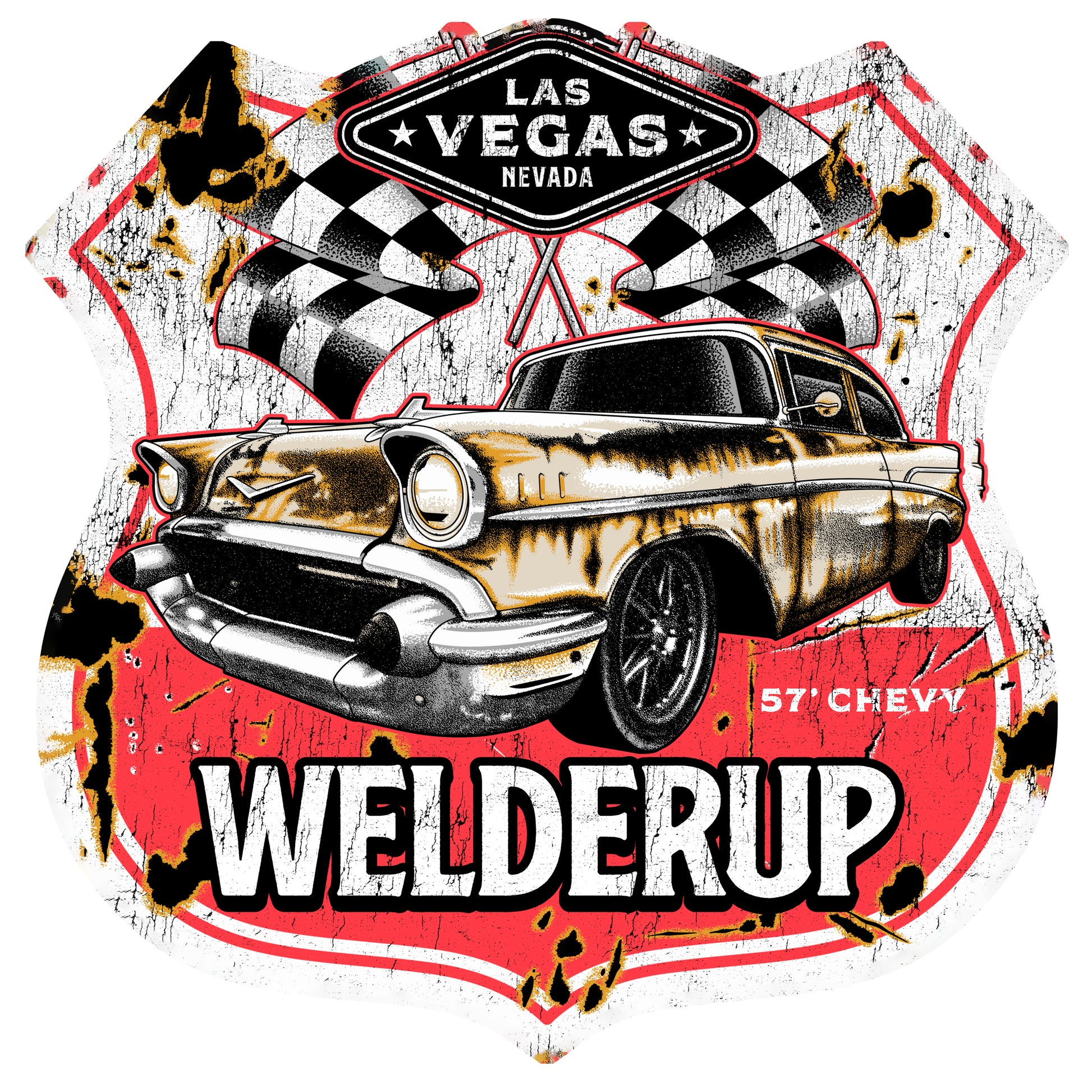 The Welder Up 1957 Chevy Route 66 magnet measures 4" X 4"